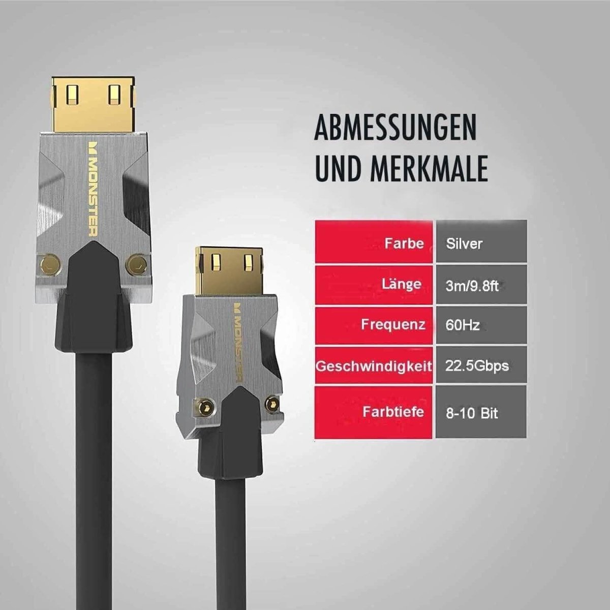 Cavo HDMI Monster M1000 Ultra HD (1,5 m) | 4K HDR10 | Alta velocità 18 Gbps | Connettore V-Grip™